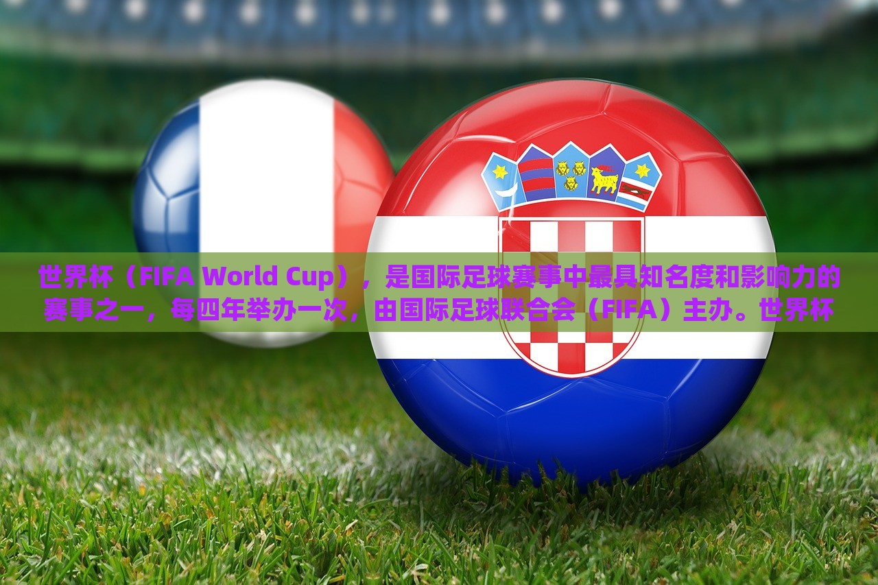 世界杯(FIFA World Cup),是国际足球赛事中最具知名度和影响力的赛事之一,每四年举办一次,由国际足球联合会(FIFA)主办。世界杯的举办是为了促进全球足球运动的发展,并加强各国之间的交流与友谊。世界杯赛事的规模和影响力在逐渐扩大,已经成为全球体育界最盛大的赛事之一。