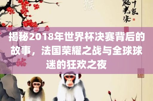 摘要:,,本文揭示了2018年世界杯决赛背后的故事,展现了法国队的荣耀之战和全球球迷的狂欢之夜。在这场激动人心的比赛中,法国队通过精彩的团队合作和坚韧的斗志,最终赢得了冠军。这场决赛不仅成为了足球史上的经典之战,也激发了全球球迷的热情和激情,成为了一个难忘的夜晚。